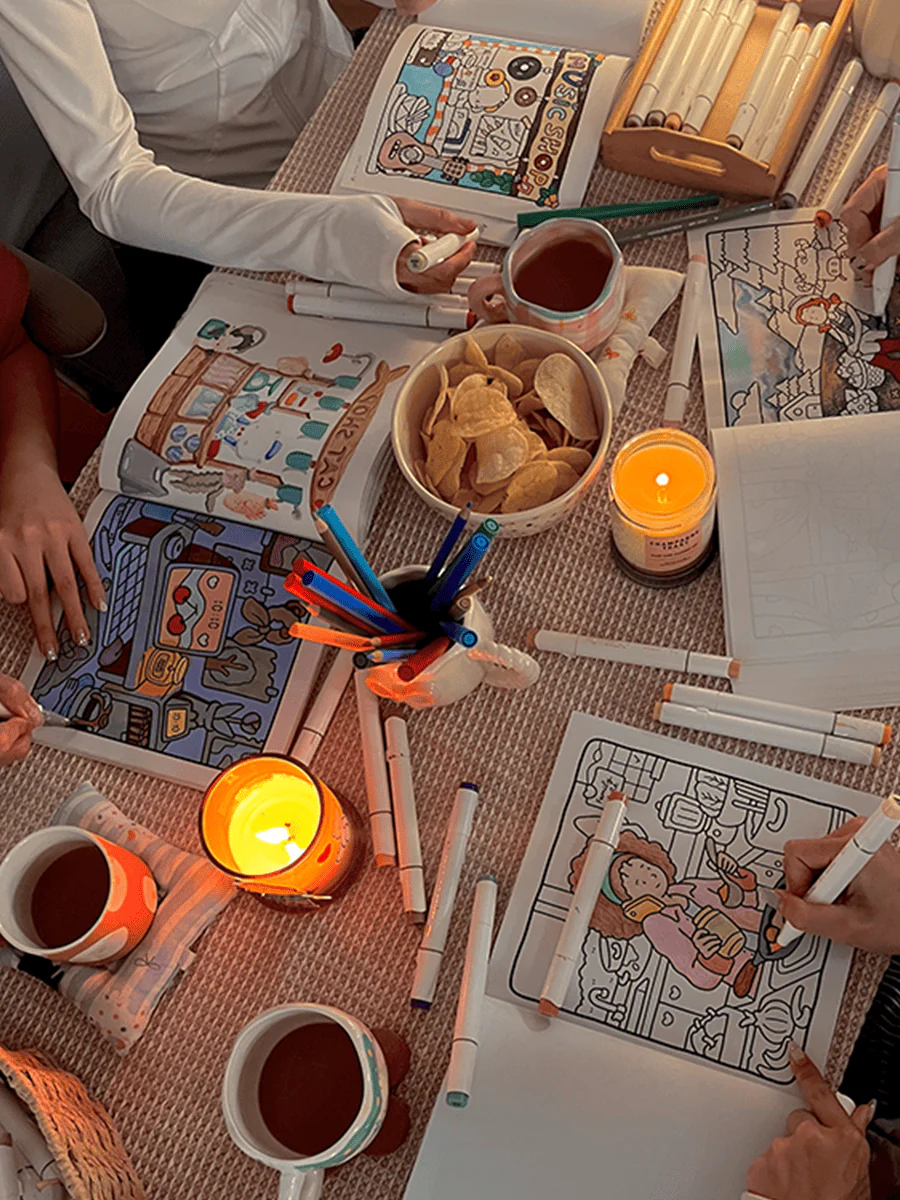 We craft these coloring books to offer comfort and relaxation to people like us. We may feel overwhelmed, restless, and anxious at times, but when we sit down with something as simple and calming as these pages, we’re reminded that the smallest moments can ground us in life. Hand-drawn with love and care, designed to create a soothing experience, these books are enjoyed gently, helping you find a cozy moment in every little detail.